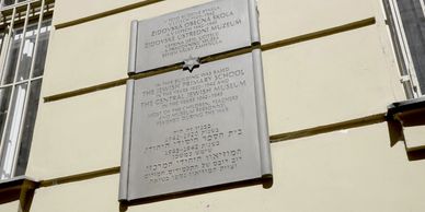Commemorative marker outside the Jewish School that became the Jewish Museum during the war in the Jewish quarter in Prague.